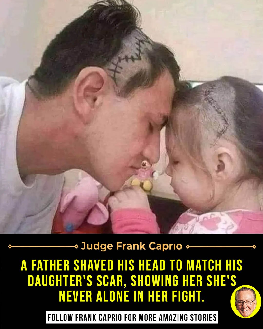 A father stood beside his baby girl—tiny, brave, and freshly scarred from brain surgery after her fight with brain cancer. And without hesitation, he took