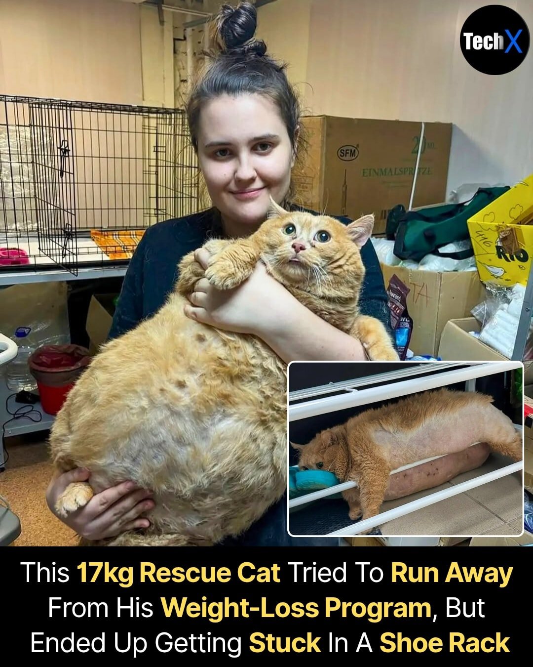 Meet Crumbs — the 17-kg hospital cat who once lived on cookies and soup in a Russian basement. After being rescued, he started a slow