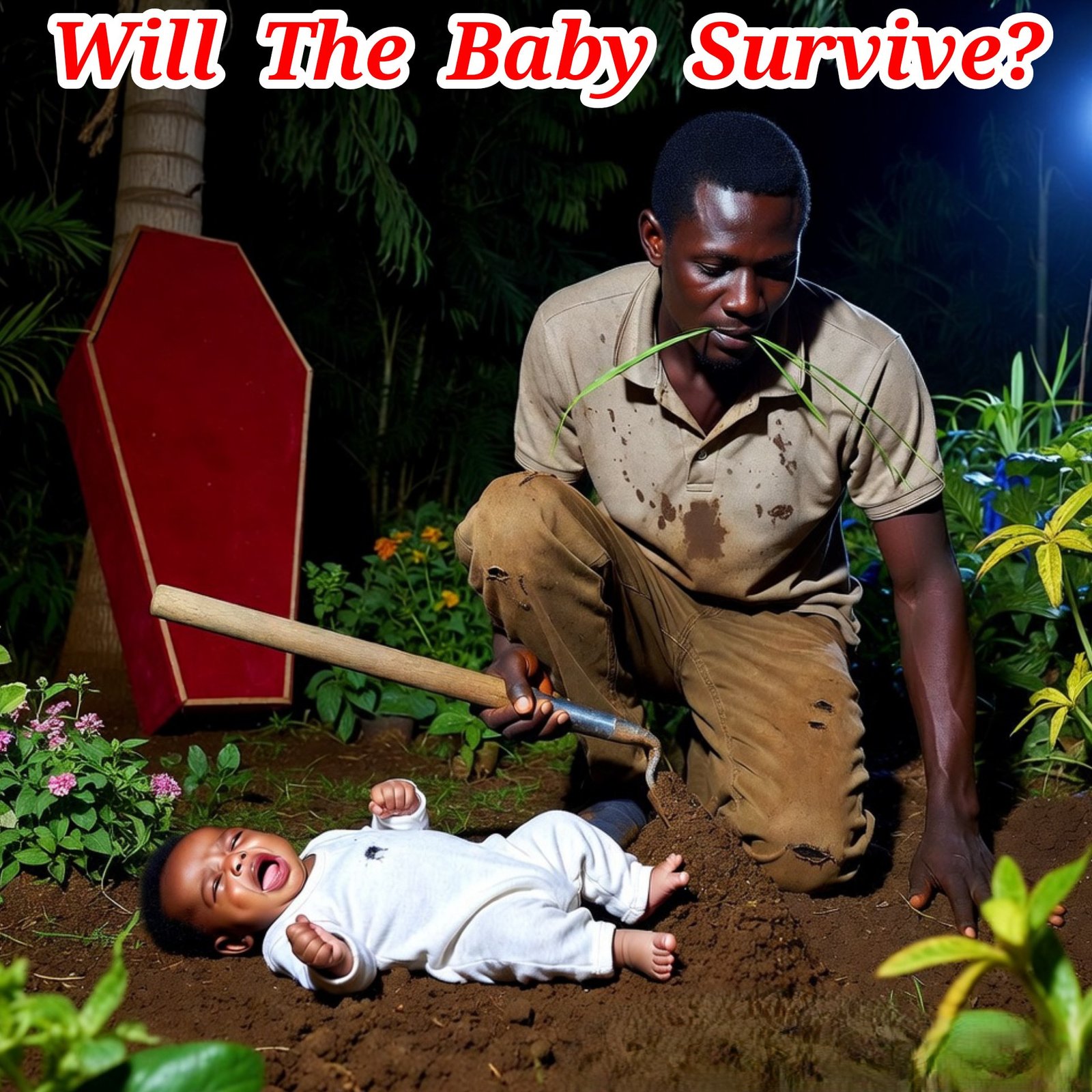 “I have to be fast before the baby’s mom finds me.” The Madman said as he dug the soil. Meanwhile, the Baby’s mom, Grace, was