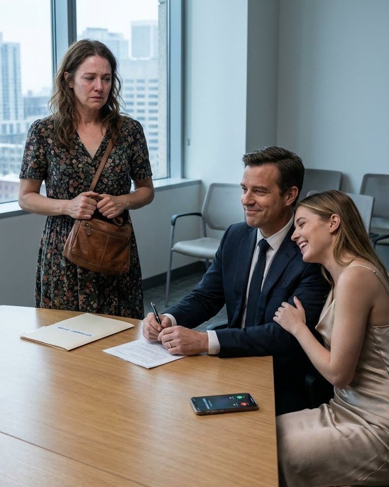 The courthouse smelled faintly of disinfectant and despair. I stood in my thrift-store dress, clutching a purse that had once belonged to my mother. Across