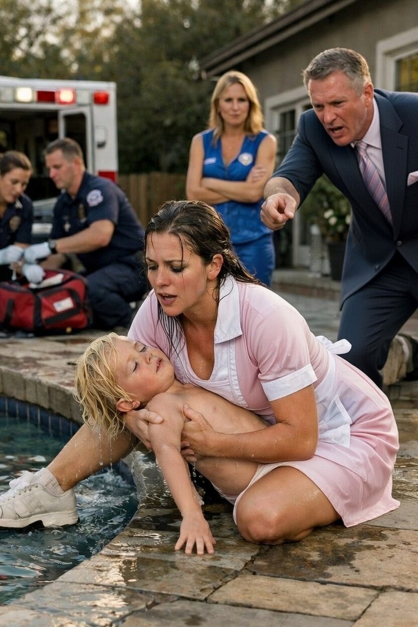 She Didn’t Even Take Off Her Shoes Before Jumping Into the Pool to Save Their Son, and Paramedics Later Said Those First Seconds Made the Difference — But That Same Evening, the Boy’s Mother Looked Her in the Eye and Said, “You Should Start Packing Your Things.”