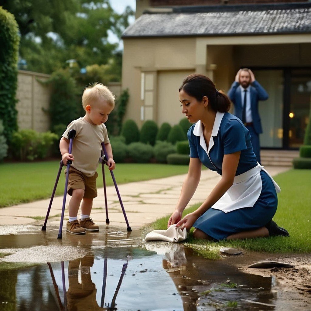 Alejandro looked at Lupita, who had looked down again. «Mateo, come here,» Alejandro said, kneeling down to his son’s level. The boy approached, leaning on his crutches.