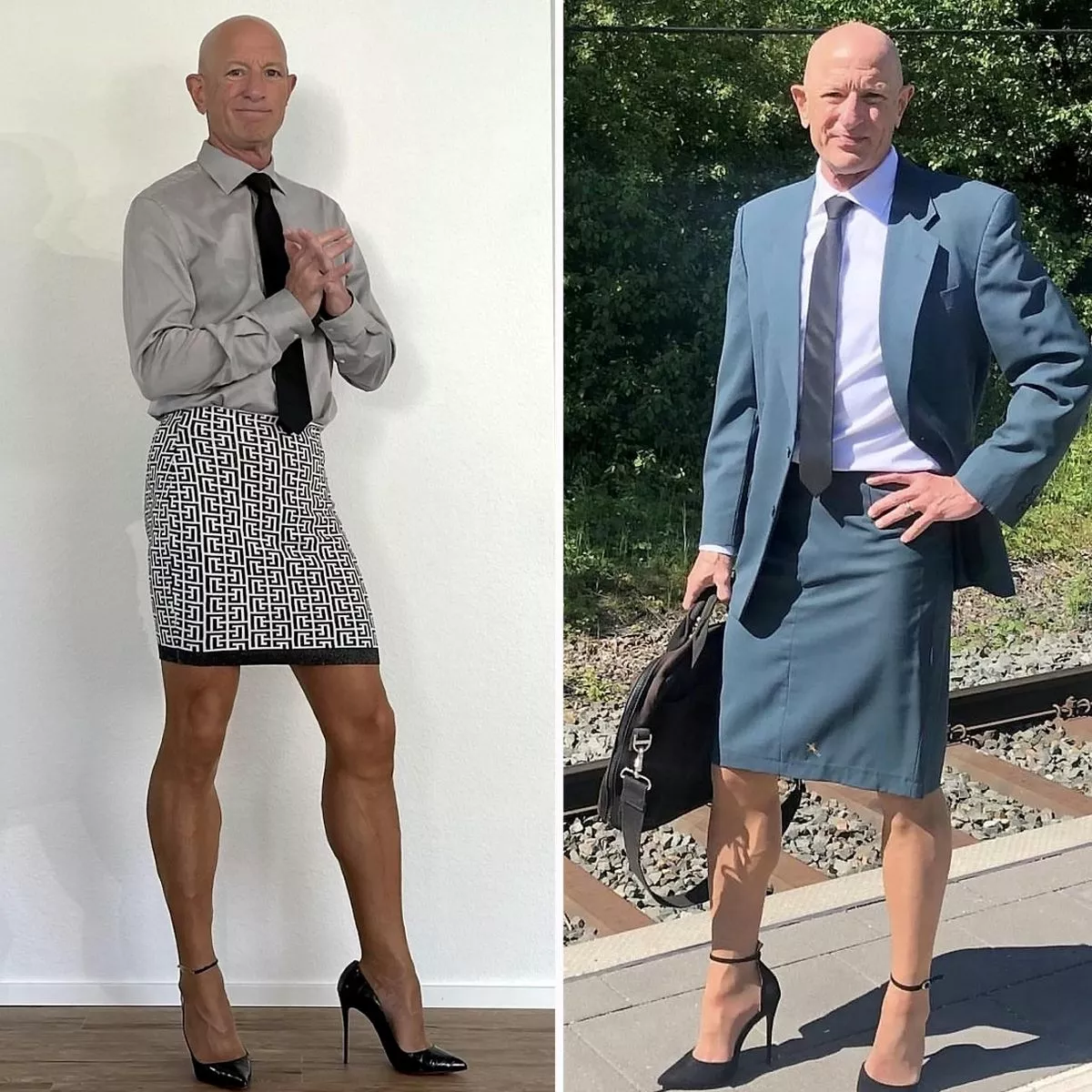 Fairly, he believes that items like skirts provide a wider range of variety than the typical slacks or pants most men wear to work.