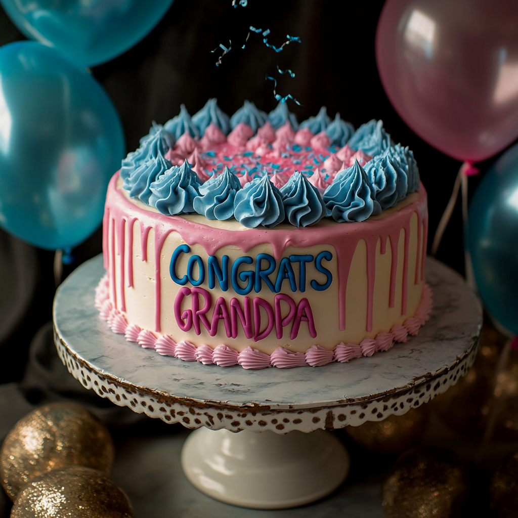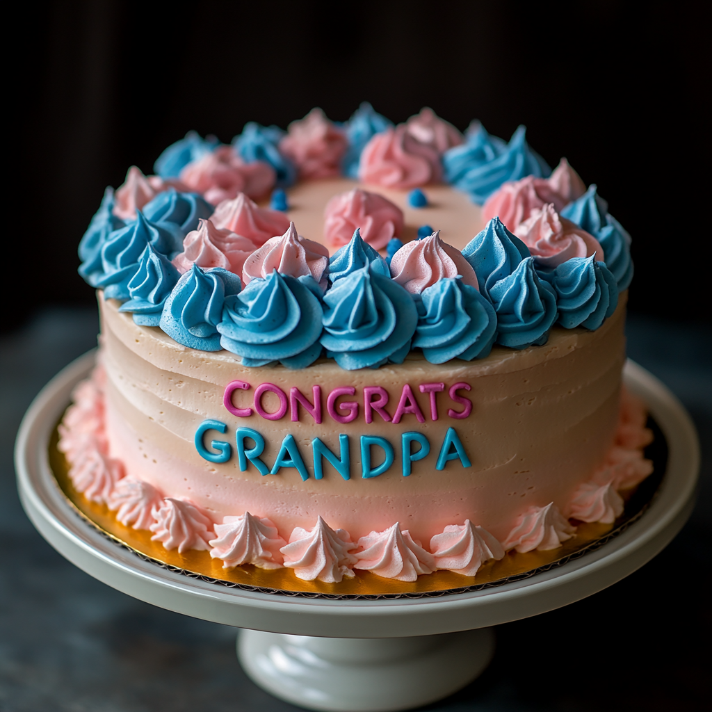 She laughed, her eyes sparkling with that same nervous energy she’d had during dinner. Only now, it all made sense. “Yes! I wanted to surprise you,” she said, taking a step closer and holding up the cake like a trophy. It was white with blue and pink icing, and in big letters across the top, it read, “Congrats, Grandpa!”