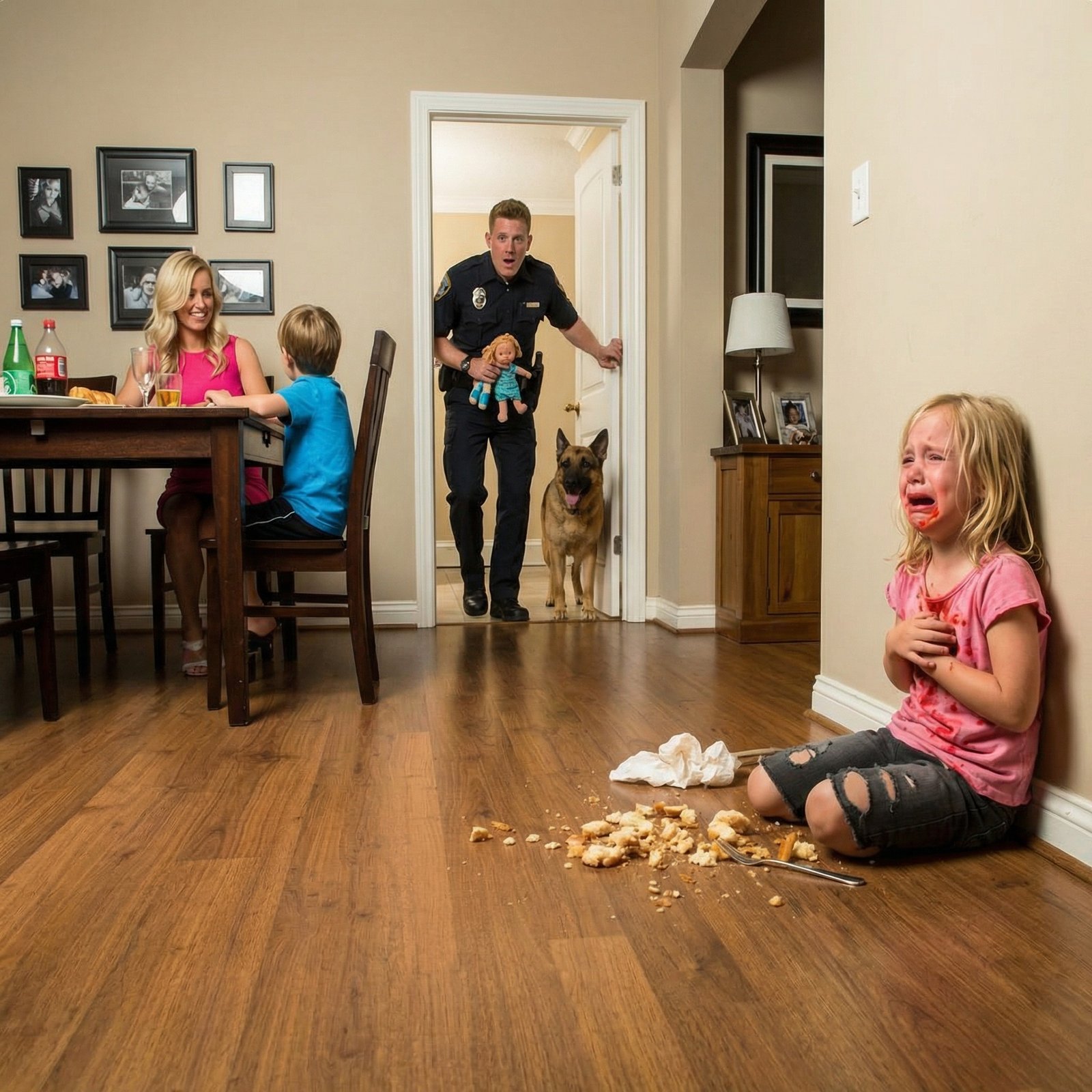 Daniel drove back with two officers while Sophie remained under medical care. Koda went too. The house felt smaller in daylight, uglier. Officers photographed the closet, the locks, the general condition of the living spaces. Daniel watched without speaking, jaw clenched so hard it hurt.