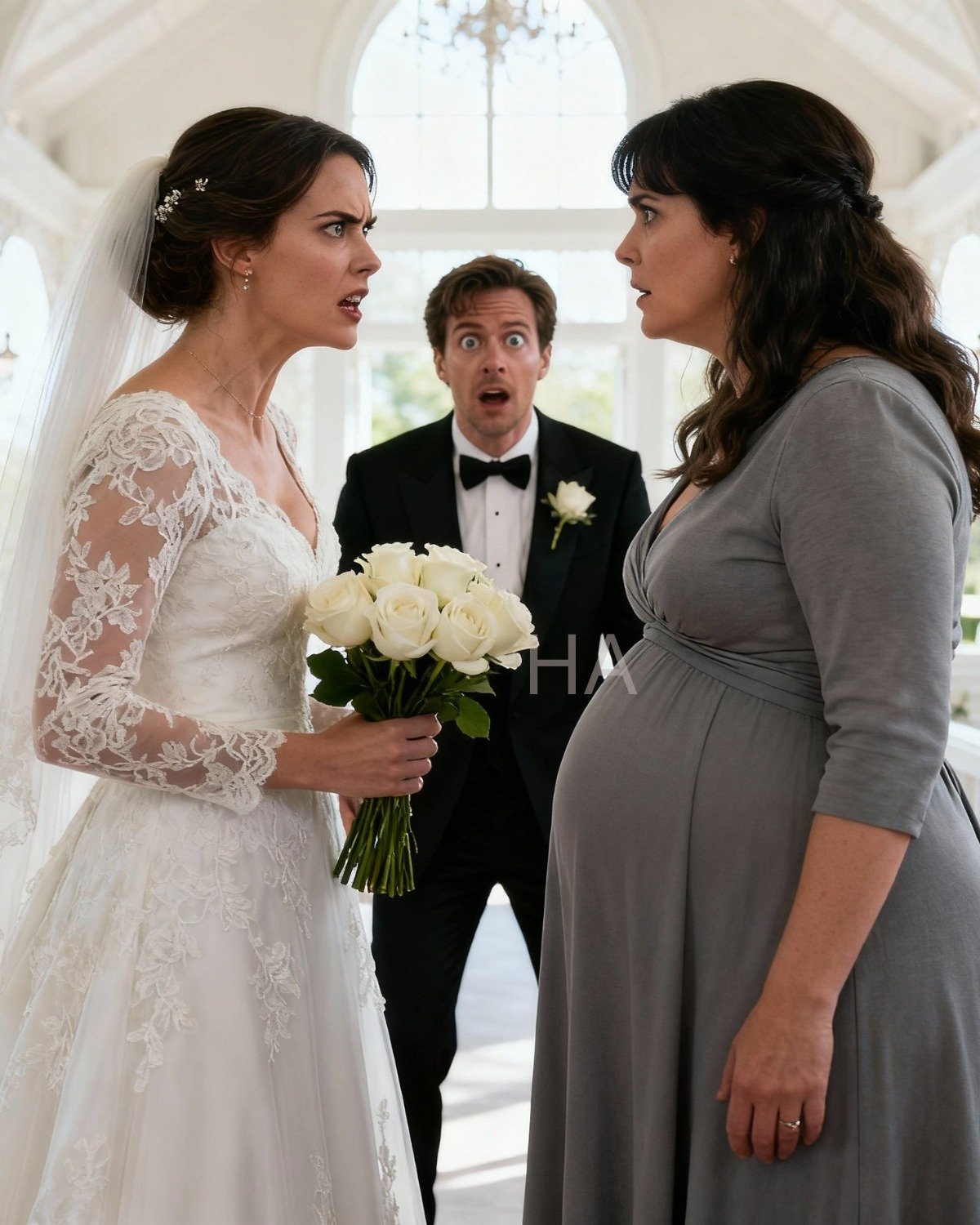The most unexpected thing was that she arrived pregnant to congratulate us. Her appearance was a shock and drew everyone’s attention. Whispers filled the room; no one knew what was going to happen.
