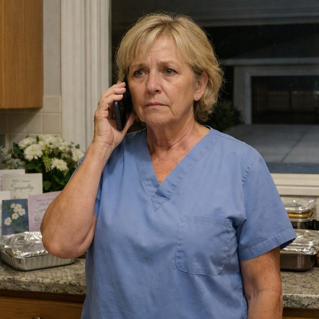 I stood there in scrubs, surrounded by sympathy cards and casserole dishes people had dropped off after the service—beautiful gestures that suddenly felt like they belonged to someone else’s life.