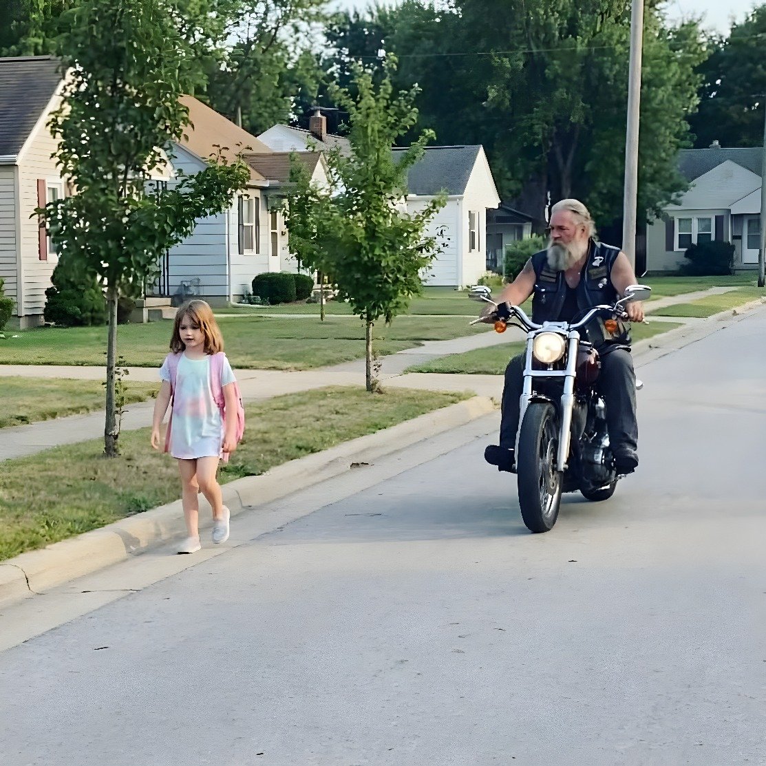 My daughter, Lily, walked the same four blocks from Riverside Elementary to our house. And for three straight weeks, a motorcycle seemed to appear like clockwork—keeping a careful distance behind her, slowing whenever she slowed, and only leaving once she’d made it through our front door.