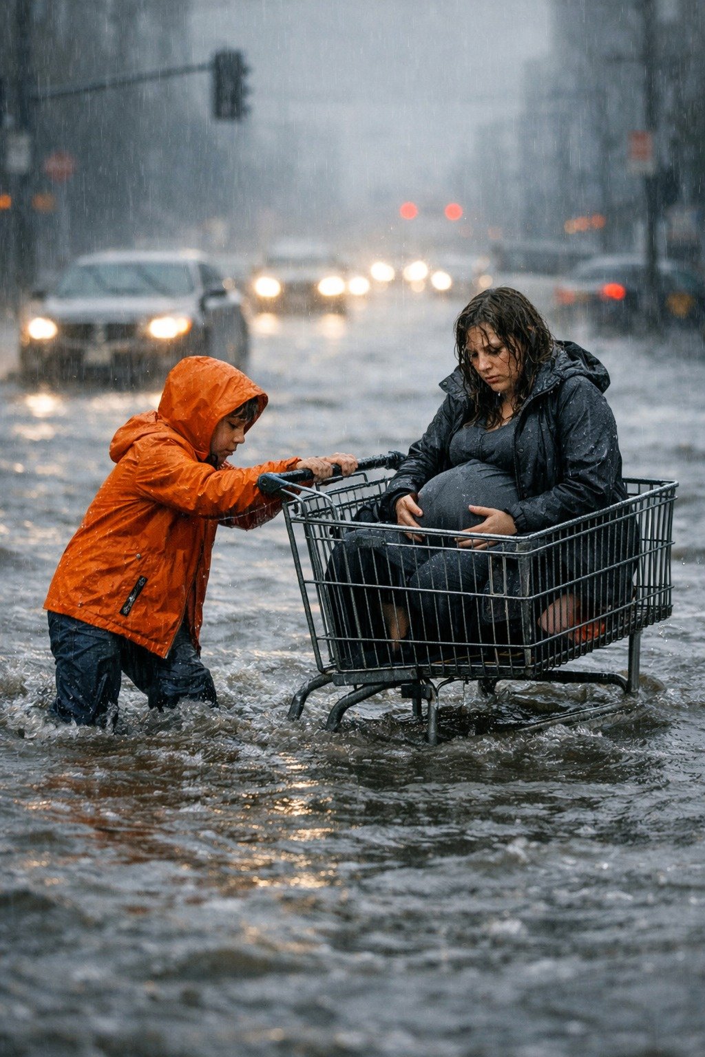 The metal handles were freezing, slick with rain, and far heavier than he expected. His arms burned. His shoes filled with water. A horn blared somewhere behind him. Someone yelled something cruel.