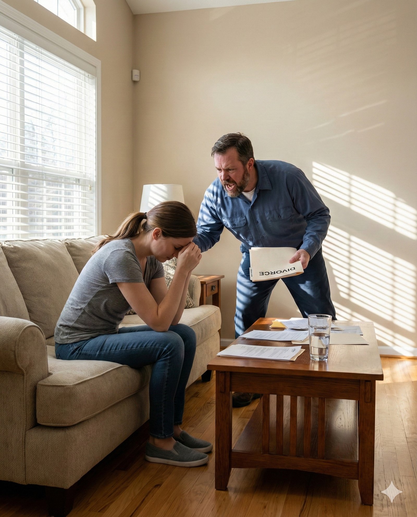 He tapped the envelope with two fingers. “I’ve already filed for divorce,” he announced. “Be out of my house by tomorrow.”