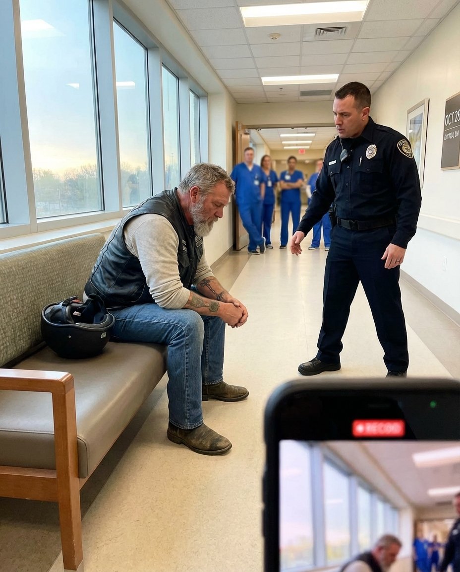 I lay on my side on a vinyl bench outside ICU, jacket folded under my head like a pillow that didn’t work. My boots stayed on. My leather vest stayed on. I didn’t take up much space. I tried not to.