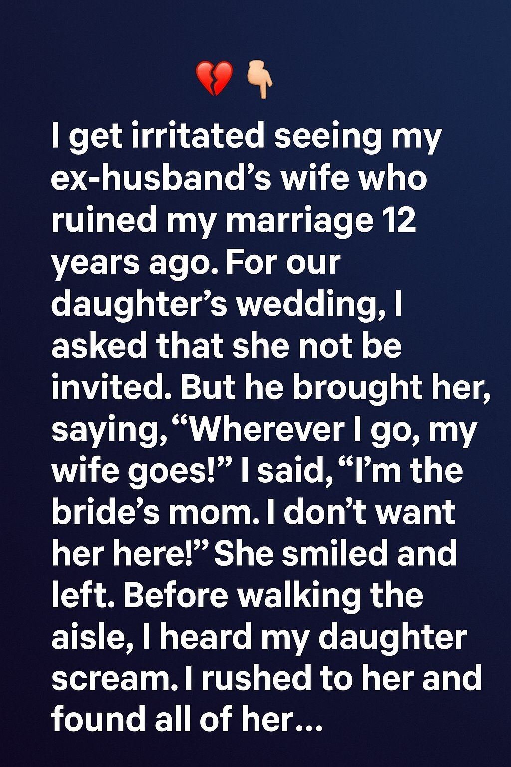 I don’t want her here!” She smiled and left. Before walking the aisle, I heard my daughter scream. I rushed to her and found all of her…standing in tears in front of a ruined bouquet and a torn part of her dress.