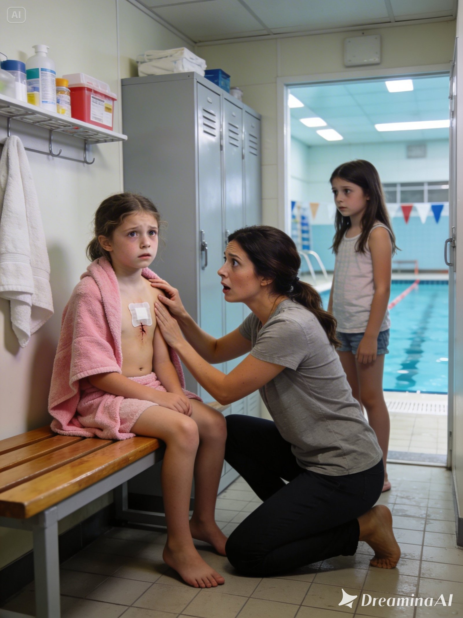 Fresh surgical tape covered a small stitched incision on her shoulder blade. The stitches were clean and precise, the kind you would expect to see after a controlled medical procedure rather than a playground accident.