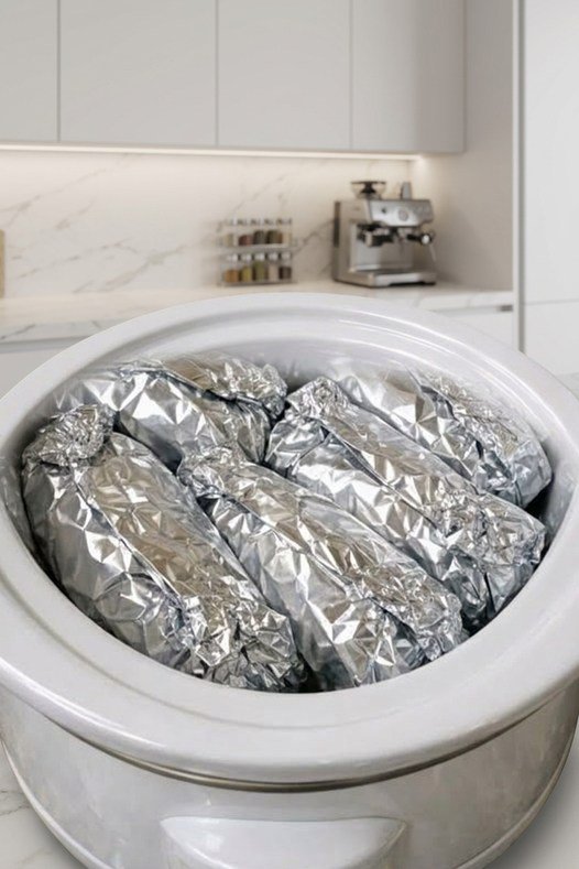 What makes this recipe especially appealing is its simplicity. The apples are first washed and carefully cored to create a small space in the center for the filling. A mixture of softened butter, brown sugar, and cinnamon is then spooned inside each apple, along with raisins or nuts for extra flavor and texture. Once filled, the apples are wrapped individually in foil, which helps seal in moisture and allows the flavors to develop as they cook. The foil packets are then placed in a slow cooker, where gentle heat gradually softens the apples and melts the filling into a warm, sweet sauce.