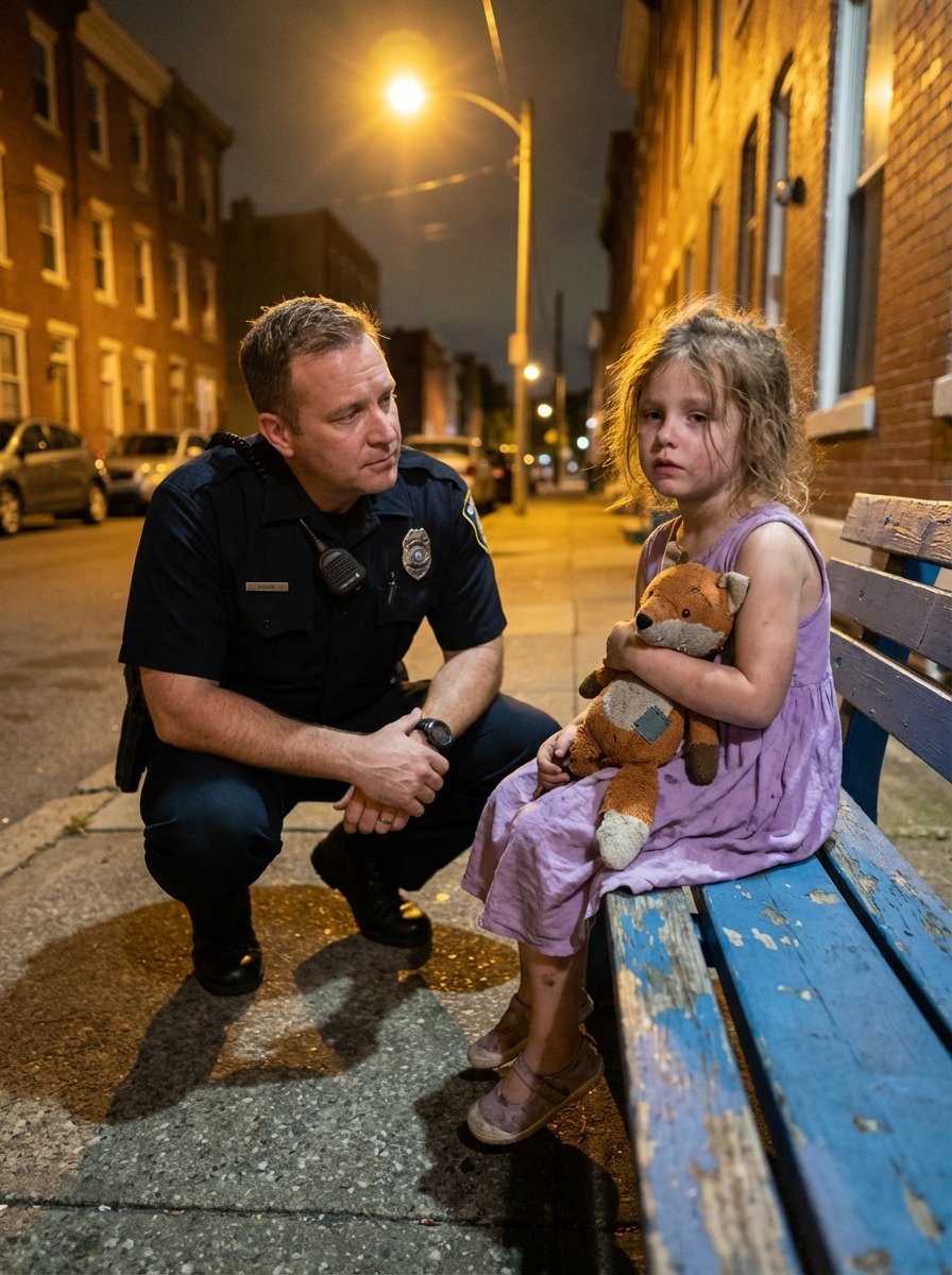 “I’ll be right back—don’t go anywhere,” he said, and the six-year-old waited for hours beneath a flickering streetlight, trusting her grandfather—until a police officer arrived, and her answer revealed a heartbreaking truth that changed everything.