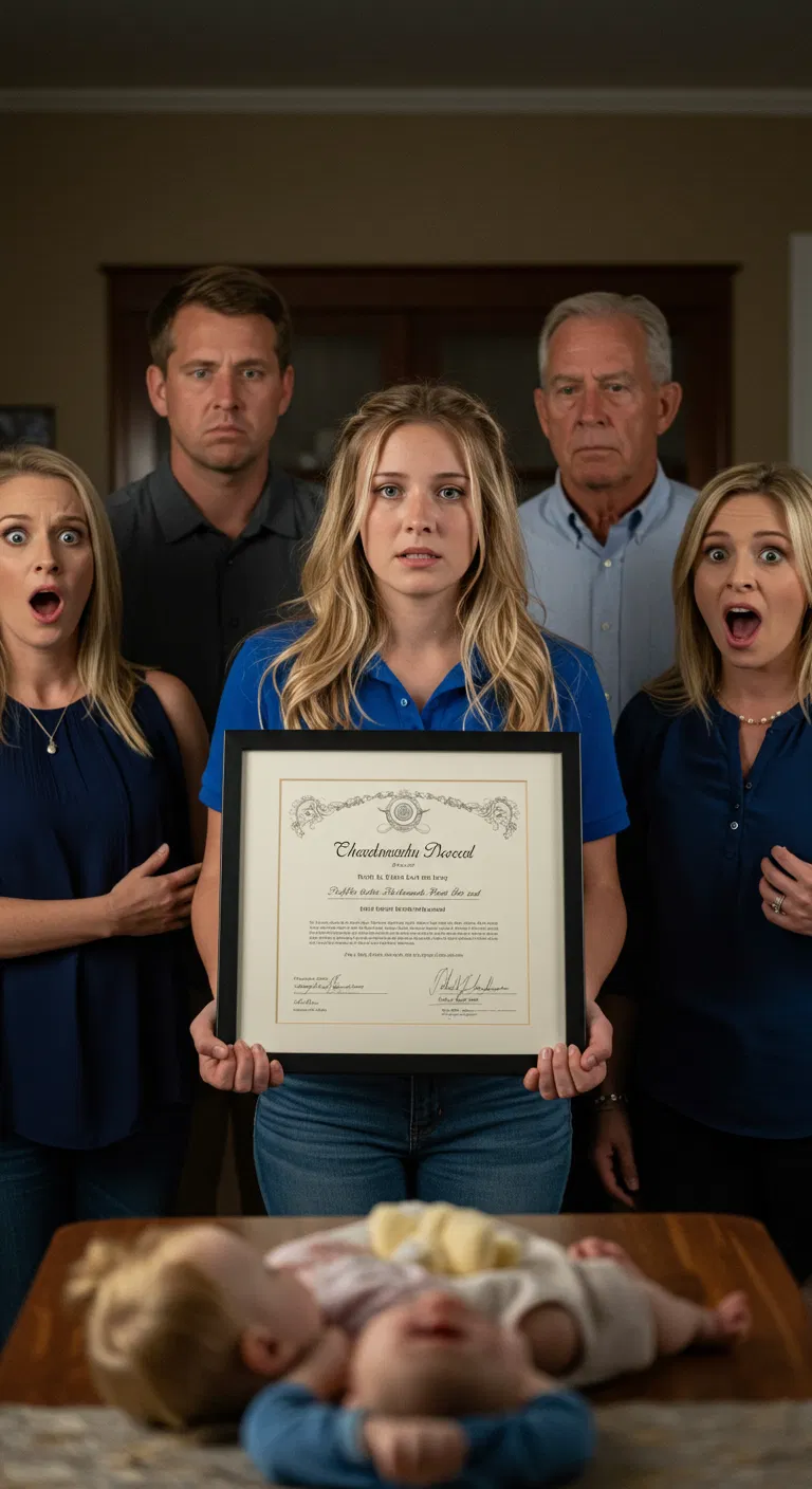 “Family is everything,” she started, which, if you know my family, is code for “someone’s about to get humiliated, please smile for the cameras.” She held up a frame—gold-trimmed, tacky, with just enough weight to feel serious. Inside was a deed. “This,” she said proudly, “is a gift from all of us. To the new parents… the apartment. It’s theirs now, paid in full.”